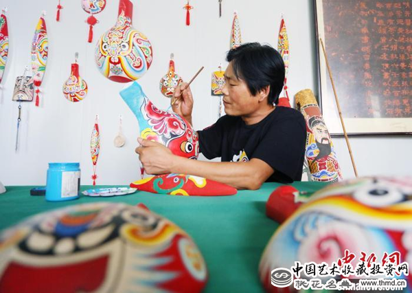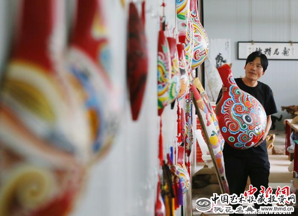 “最传统的东西也是最时尚的。”马龙说,他所做马勺脸谱在大红大绿之中有其独特的格调,创新了贴金、刻绘等技艺,融入了很多自己的想法和当地文化的元素。