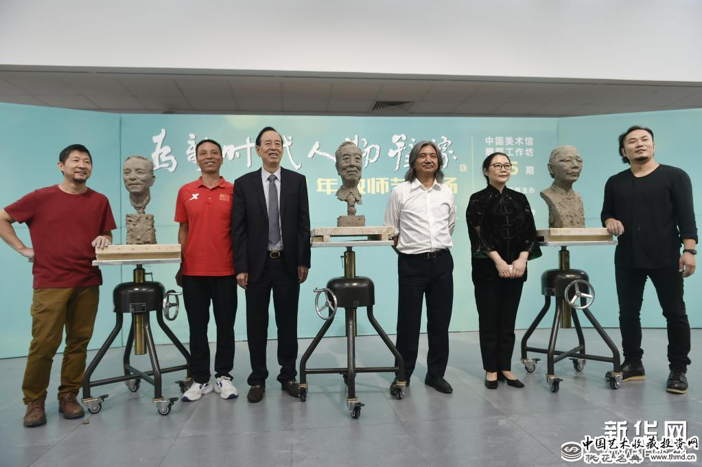 9月9日,雕塑工作者完成塑像后与教师模特合影。