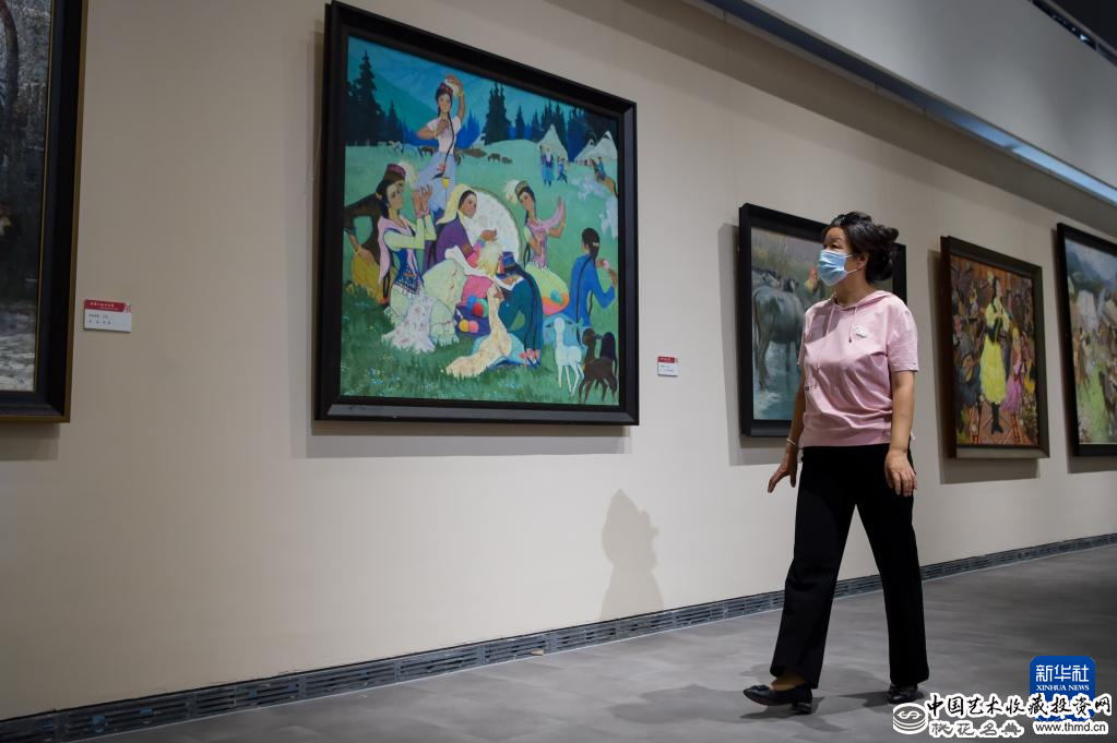 9月23日,观众在“各族人民心向党——国家典藏美术作品展”上参观。 当日,“各族人民心向党——国家典藏美术作品展”在内蒙古展览馆举办。此次美术展以筑牢中华民族共同体意识为主题,共展出国画、油画作品100幅。展览将持续至10月22日。新华社记者 李志鹏 摄