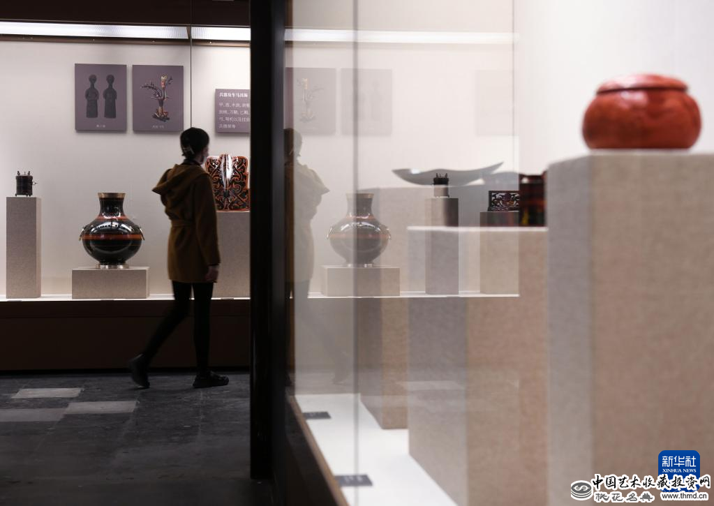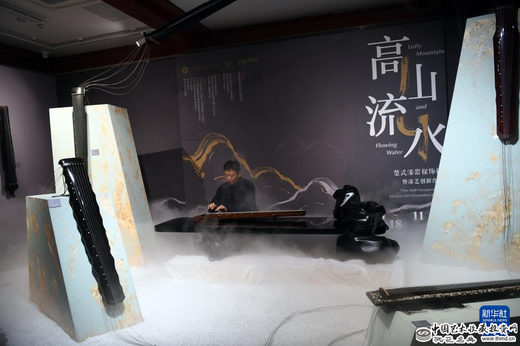 2021年10月18日,“高山流水——楚式漆器髹饰技艺暨漆艺创新作品展”在文化和旅游部恭王府博物馆开幕。本次展览以“高山流水”为主题,通过斫琴、上漆等技艺流程,向观众展示漆器髹饰技艺的魅力。 新华社记者金良快摄