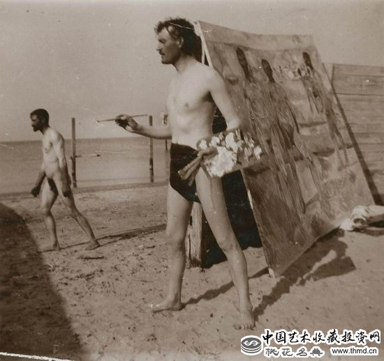 蒙克在沙滩上作画,1907年,©Munchmuseet