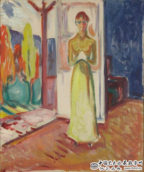 蒙克,《站在门口的女子》,纸本油彩,1906-1707年, ©Munchmuseet