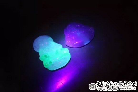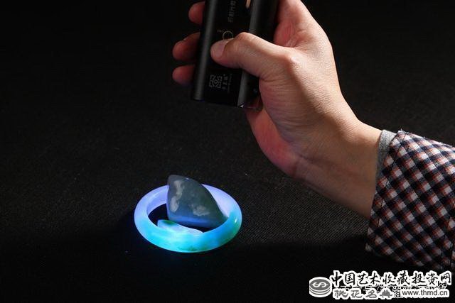 例如B货翡翠在紫外线灯照射下,通体会发出荧光反应,因此翡翠是否有荧光,是判断翡翠真假性的重要依据。