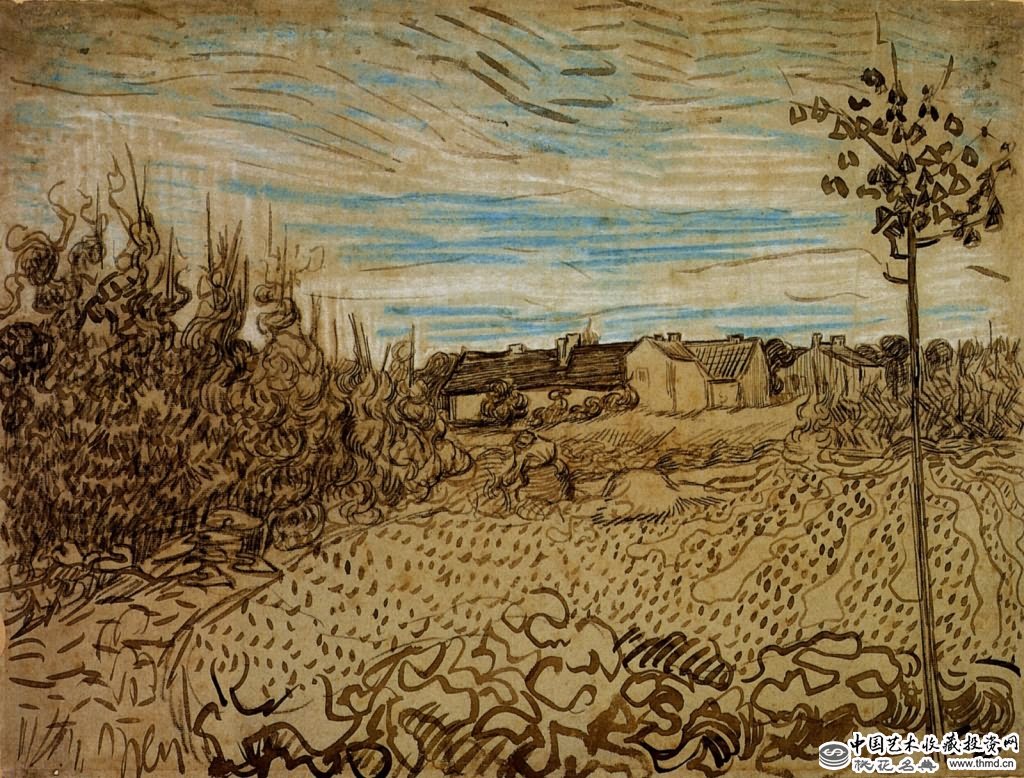 梵高作品的最大特色在于凸显出他那种非同寻常的仿佛想要突破画框的一股奔涌而出的力量,和一种难以克制的自我表达的欲望。在他的作品中,有着对事物热烈赞赏的质朴精神和本能的强烈表现冲动相融合的特征。他创作时并不顾忌形式,却反而开拓了形式。大胆、简单的笔触中有着一种天生的敏感和傲慢。他对束缚、制约、规范有着深恶痛疾的反感。在他对事物的描绘和色彩的酷爱中,显示出他内心的粗野狂暴和温柔单纯、他内心的战栗和斗士般激情相混合的奇特秉性,在他对天空、田野、房屋的描绘中,既有着他深沉力量的一面,又有着孩子般稚气的一面。